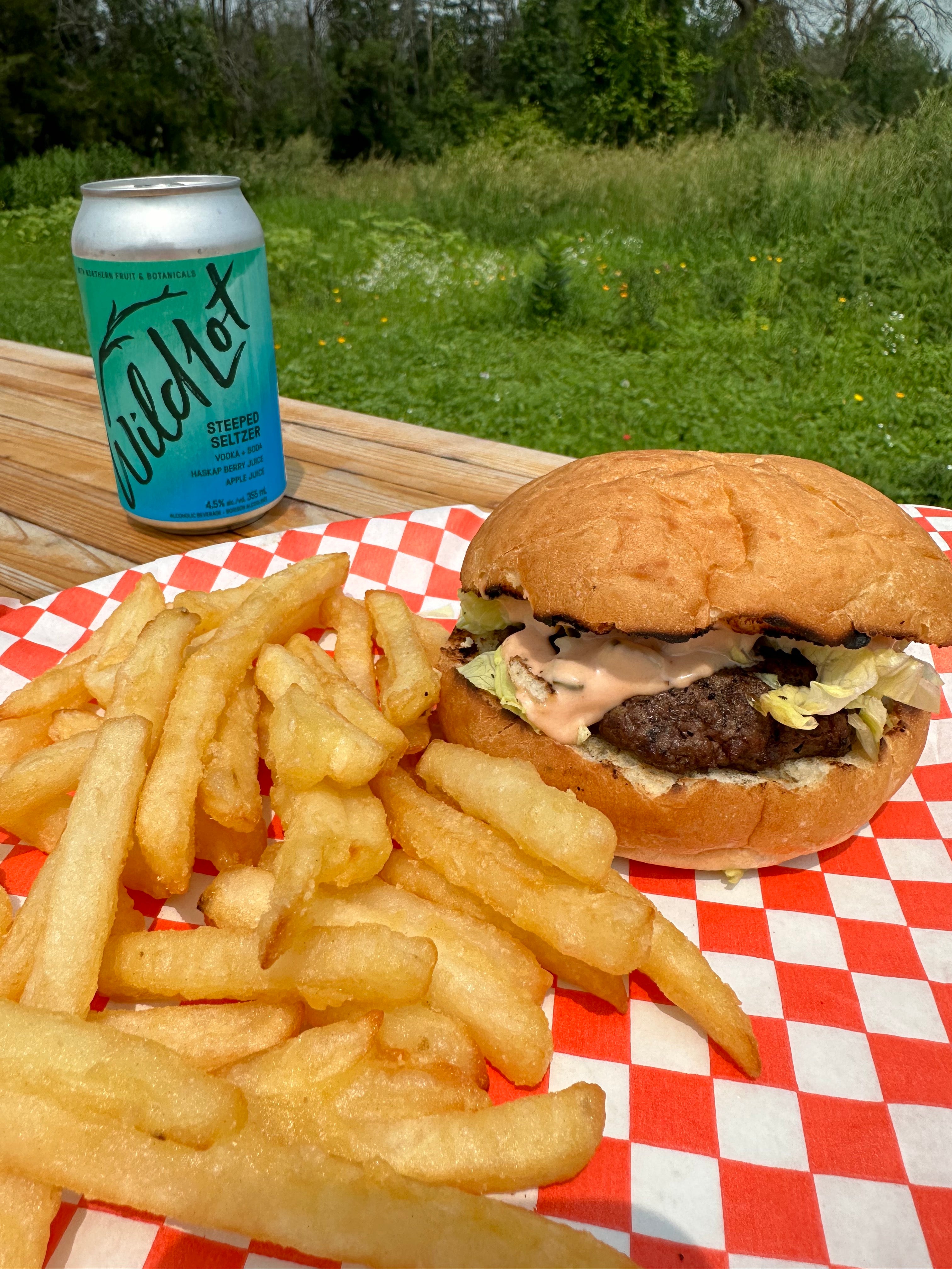 We also offer an assortment of local beer tallboys and local wine bottles to purchase to go in addition to a full assortment of Wild Lot spirits, canned seltzers, canned cocktails, and bitters.